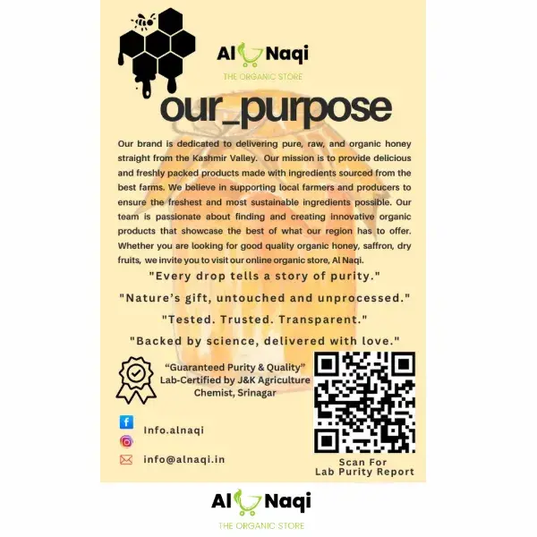 Experience the purity and excellence of the Kashmir Valley—order your jar of Al Naqi Kashmiri Acacia Honey and bring a new standard of quality to your lifestyle or business today.